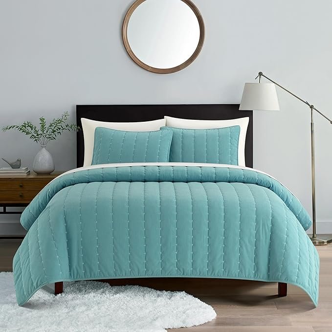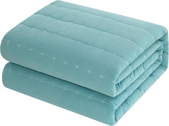 Experimenta la comodidad y el estilo del juego de colcha Chic Home Jalla, hecho de pana suave de color azul con delicados detalles de bordado, ofreciendo una colcha versátil que combina la calidez de una colcha con la elegancia de una colcha.