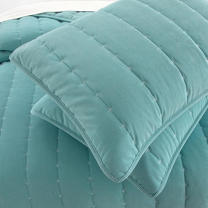 -Relleno alternativo hacia abajo: sumérgete en la comodidad de nuestra moderna colcha para cama queen. Con una alternativa de plumón sintético de alta calidad, te envuelve en calidez sin añadir peso, asegurando una noche de sueño sereno.