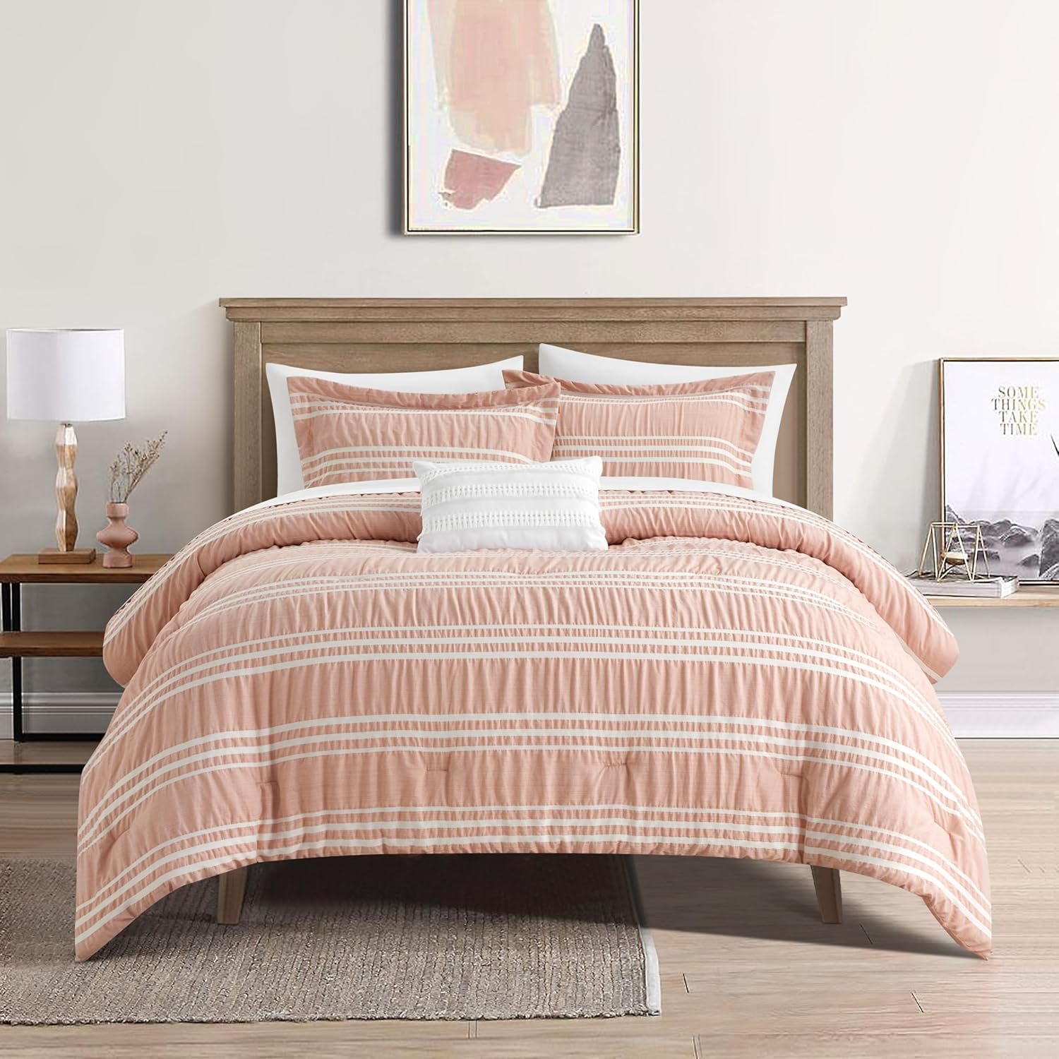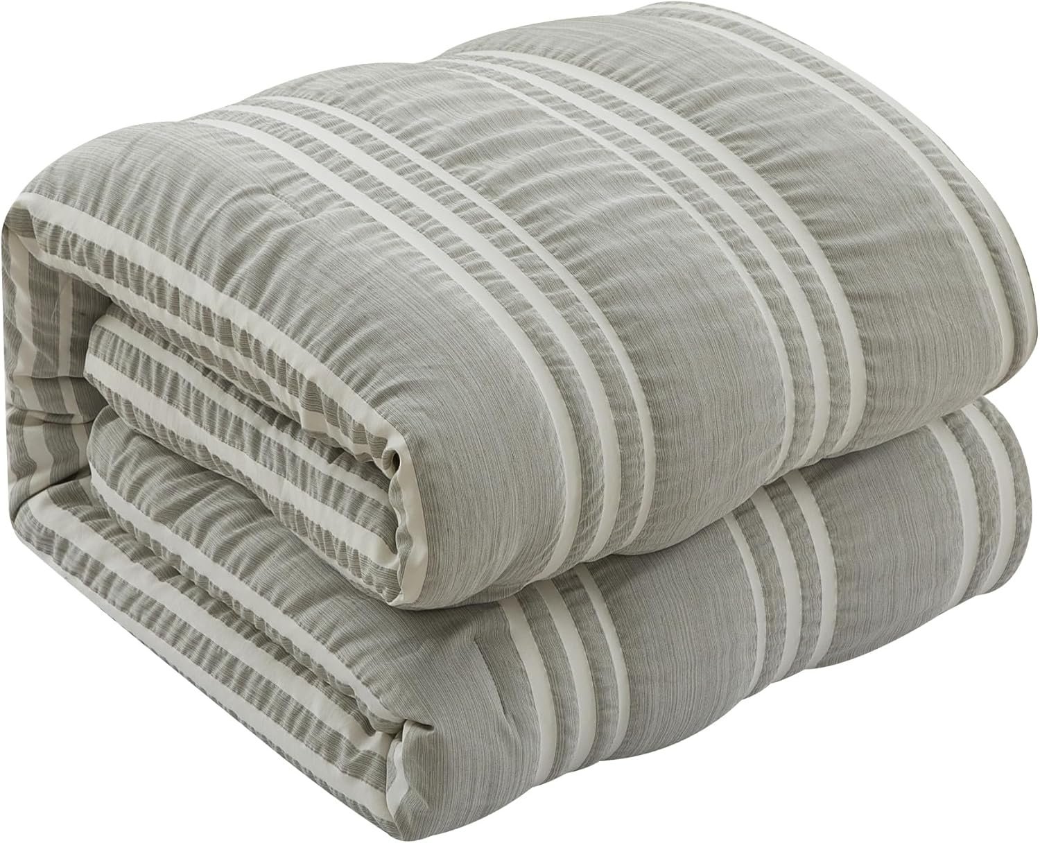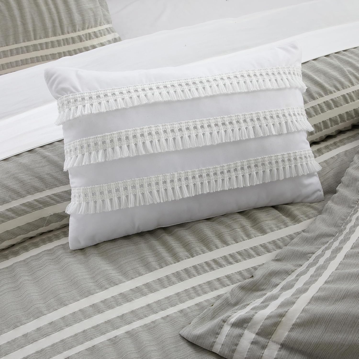 Juego completo de 4 piezas: eleva tu recámara con este juego, con 1 edredón con rayas blancas, 2 fundas de almohada de seersucker a juego y 1 almohada decorativa con flecos de borla, para los un aspecto pulido.