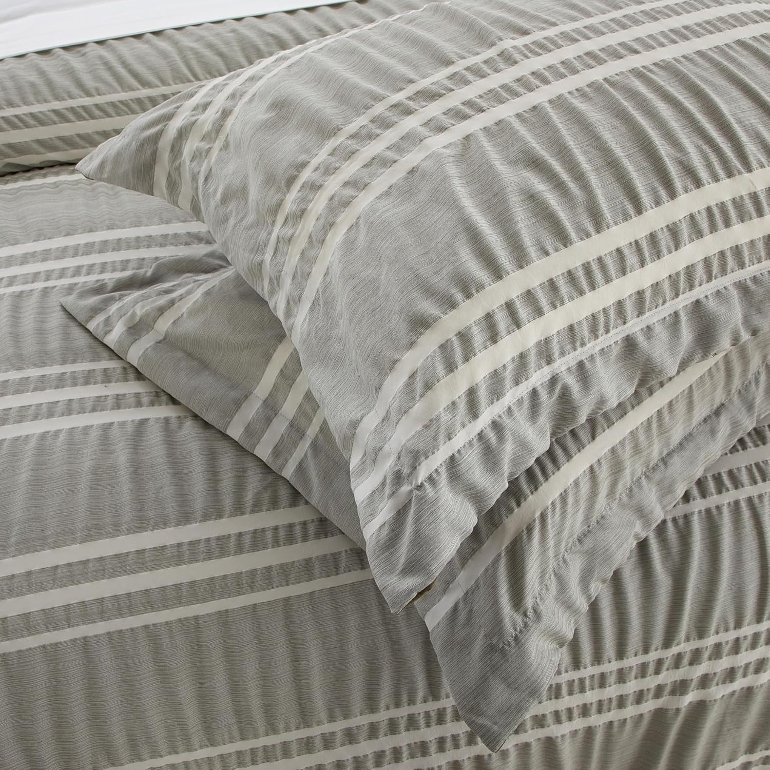 Sofisticación de vidente – Disfruta del lujo único de nuestro juego de edredón Emma tamaño queen size y king size, fabricado con tela de alta calidad. Su textura nítida y su elegante diseño a rayas ofrecen una elegancia clásica y aireada a la decoración de tu recámara.
